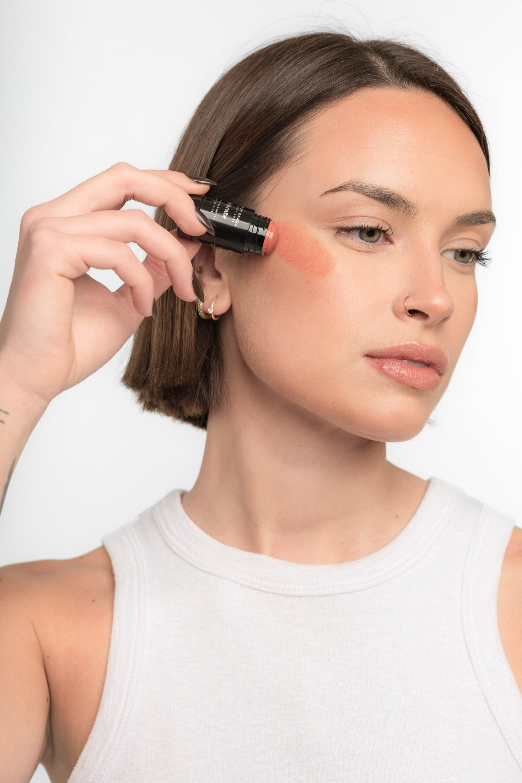 Está pensado para darle vida y frescura instantánea al rostro. Su formato en barra lo hace muy práctico y fácil de usar: simplemente se aplica directo sobre la piel y se difumina en segundos con los dedos, con una esponja o con una brocha. La textura es cremosa y ligera, lo que permite que se funda con la piel sin dejar sensación pesada ni marcada. También es construible su acabado.